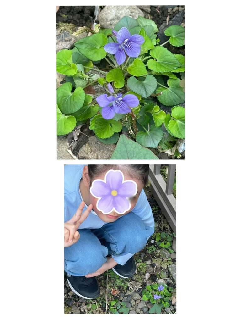 次は、お稽古場の裏庭で すみれの花 発見✨️